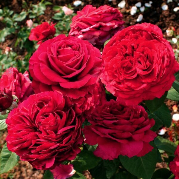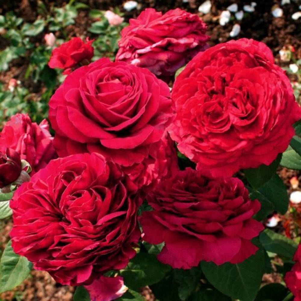 Роза Четырёх Ветров — роскошный цветок! В каждом бутоне 100 лепестков насыщенного карминного цвета с лёгким фруктовым ароматом и запахом дерева. Тёмная листва, трепещущая на ветру, почти скрывается под обилием прекрасных цветов!_x000D_