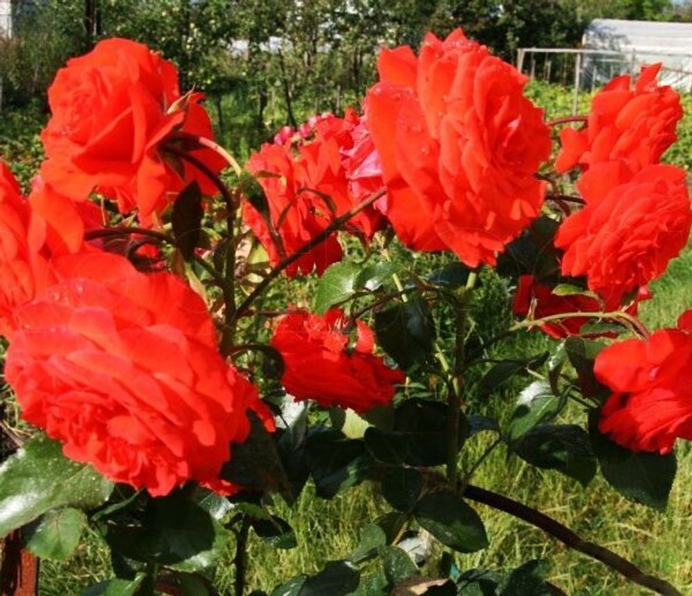 Maintower яркая, крупноцветковая плетистая роза. Цветы крупные 9-11 см в диаметре, открываются из округлых бутонов, махровые, чашевидные, не показывают серединку. Лепестки отогнуты наружу. Цветет очень интенсивно. Цветы собраны в соцветия по 3-5 штук, они также не выгорают на солнце и не боятся дождя. Многие считают ее одной из лучших плетистые роз последних селекций. Цветы чудесно пахнут. Куст высокий- 200-300 см и широкий 100-200 см. Листья зеленые, полуглянцевые. Устойчивость к заболеваниям высокая.